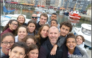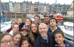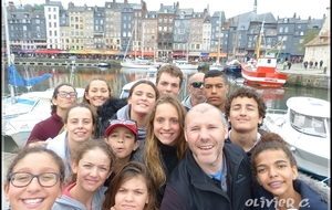 Au repas, plat de pâtes, haricots, maïs, crevettes. A la fin du repas, temps calme pendant une heure puis nous sommes partis nous promener à Honfleur en prenant (à l’aller comme au retour) le magnifique pont de Normandie ce qui nous a permis de passer très haut au dessus de la Seine avec la mer en vue. Les nageurs se sont promenés pendant 40’ dans la ville par petits groupes minimum de 2-3 (les avenirs sont restés avec Cyrille). A 16H, nous nous sommes retrouvés au point de RDV au port et nous avons offert une crêpe ou une gaufre au chocolat à tous les nageurs. Nous les avons dégustées avec les bateaux à côté de nous. Nous sommes rentrés à la piscine avec un peu de retard( à 17H10 sur le parking)mais les nageurs se sont dépêchés et nous n’avons pas perdu de temps pour un rapide échauffement à sec et pour plonger dans le grand bain à 17H20. Au programme, toujours du papillon pour les jeunes avec 4500m et du sprint en crawl et spé pour les juniors (5100m). Nous avons terminé avec un petit défi entre Pierre et Manon une nageuse avec palmes du club de Gravenchon sur 50m cr palmes départ plongé et Pierrot a perdu de quelques centièmes :o). Nous avons terminé à 19H20, passage rapide dans les douches et les vestiaires pour retourner au foyer.