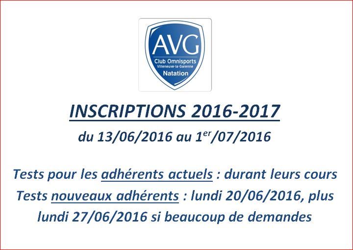Inscriptions saison 2016-2017