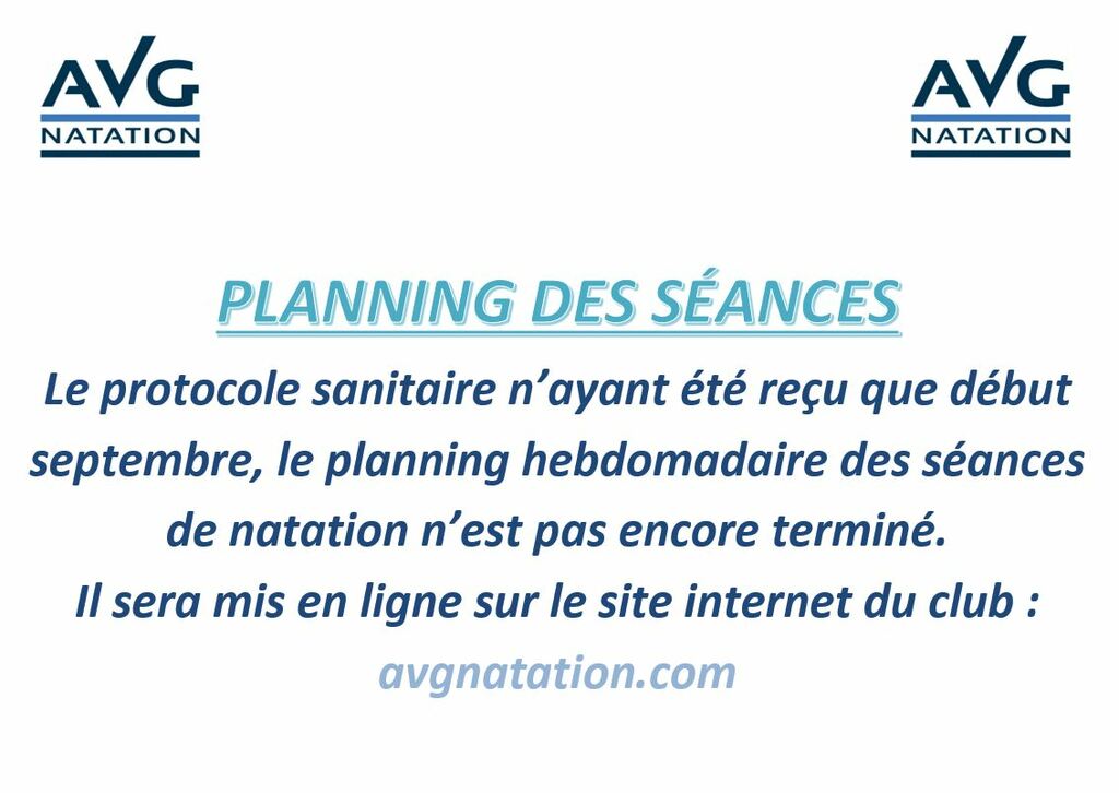 Le protocole sanitaire n’ayant été reçu que le 03 septembre, le planning hebdomadaire des séances de natation n’est pas encore terminé.